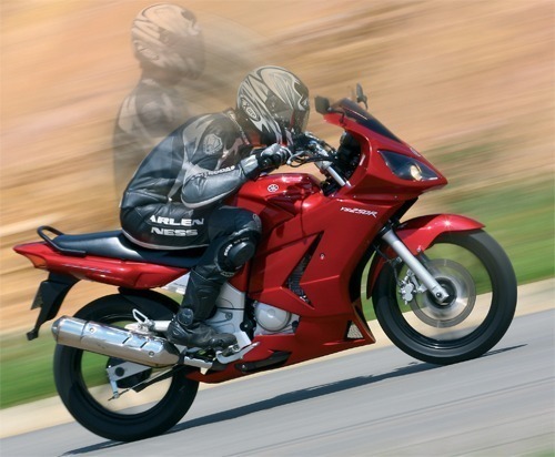 Tudo pronto para começar o teste com a Yamaha, fui alertado que seria preciso ter cuidado com o guidão, porque encostava na carenagem. Fora o problema do esterçamento do guidão e de uma saliência na carenagem que fica bem na posição dos joelhos, podendo incomodar os pilotos mais altos (problema comum em algumas esportivas), em termos de ergonomia esta carenagem se saiu bem e praticamente não altera a ciclística da moto.